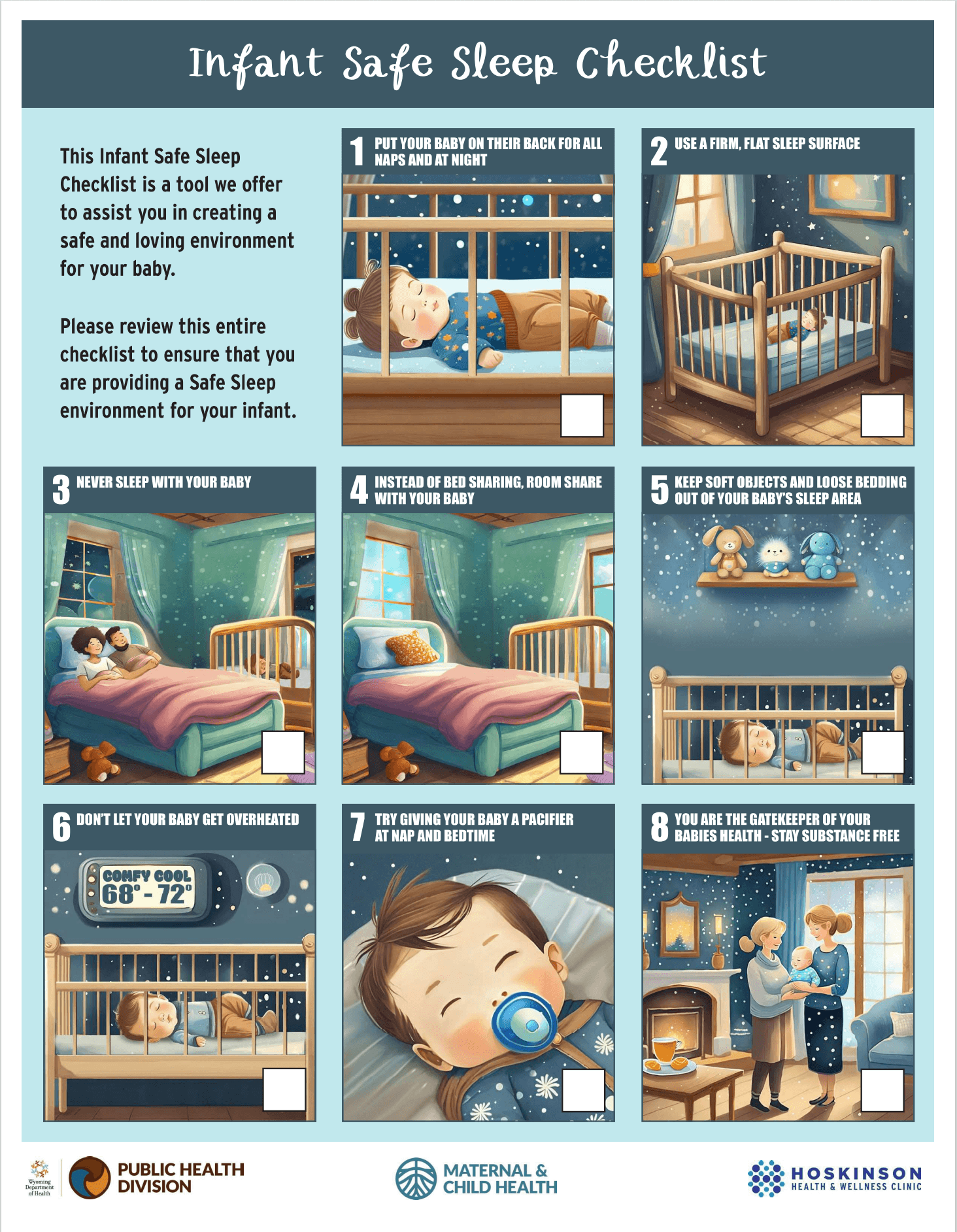 The Safe Sleep Checklist is a practical and user-friendly guide designed to empower parents with the knowledge and tools necessary to create a safe sleeping environment for their baby. This checklist has been carefully curated based on the latest research and recommendations to reduce the risk of Sudden Unexpected Infant Death Syndrome (SUIDS).